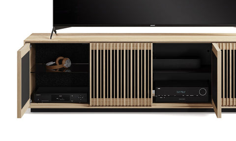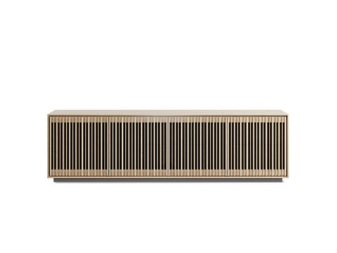 Crafted to accommodate your home entertainment necessities and safeguard your treasured belongings, this spacious four-door cabinet perfectly blends elegance with utility. Features: Hidden Wheels Adjustable Shelves Rear Access Panels Flow-Through...