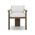 Clean and simple, this bold outdoor dining armchair features a distinctive three-leg design and curved seat back, crafted from FSC®-certified wood. The thick box cushion and knife-edge back cushion are finished in a high performance Italian upholstery. Cover or store indoors during inclement weather and when not in use.
