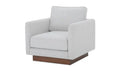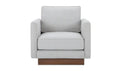 The Vernon accent chair blends mid-century design with modern functionality. It features a wooden plinth base for an elevated, lighter appearance. This chair offers unmatched comfort with removable cushions. Upholstered in durable, OEKO-TEX and Green Guard-certified fabric, it is ideal for family living, combining everyday practicality with durability.