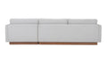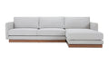 The Vernon sectional blends mid-century design with modern functionality. It features a wooden plinth base for an elevated, lighter appearance. This sectional offers unmatched comfort with removable cushions. Upholstered in durable, OEKO-TEX and Green Guard-certified fabric, it is ideal for family living, combining everyday practicality with durability.